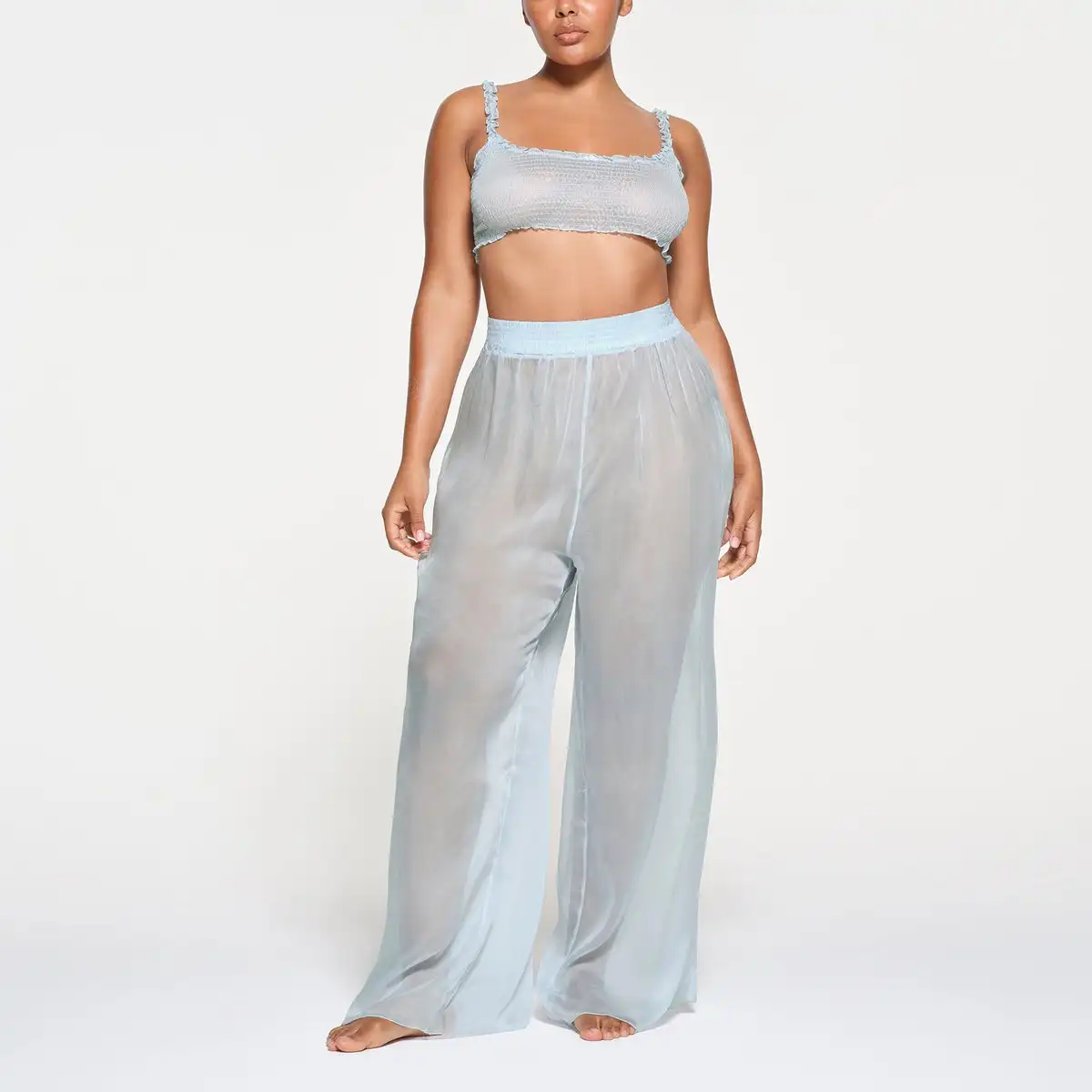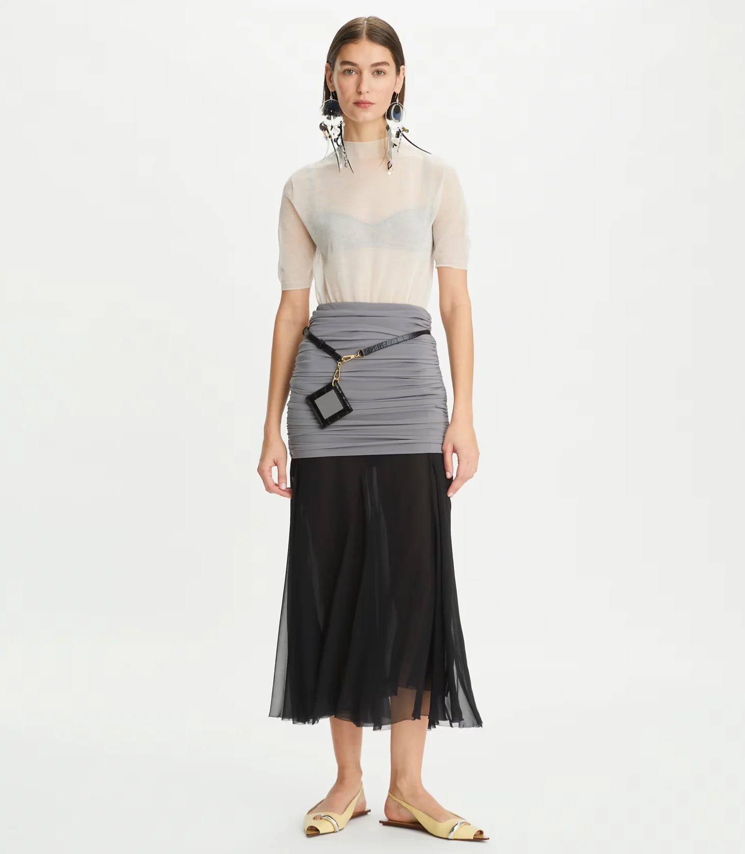 Sheer layering has featured at many a show this year, including sheer skirts at Albus Lumen and sheer floor-length gowns at Beare Park. At P.E Nation, sheer stockings poked out from under the waistband of track pants, and worn underneath briefs.