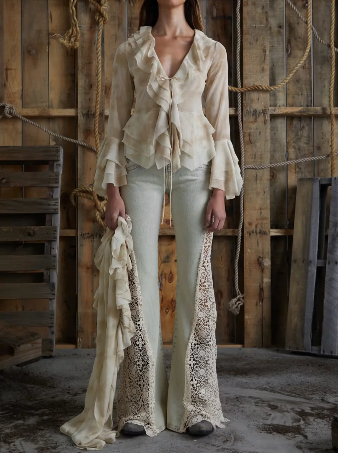 The next pair of trending jeans may barely be jeans at all if Bec & Bridge and Verner’s resort collections are any indication. At Bec & Bridge, black jeans had a vague air of Western chaps, with the front and back panels replaced with glittering sparkles. Meanwhile, at Verner, jeans were made more coastal with low-rise denim featuring a distressed wash to the knee, leading into a striped board shorts-like material.