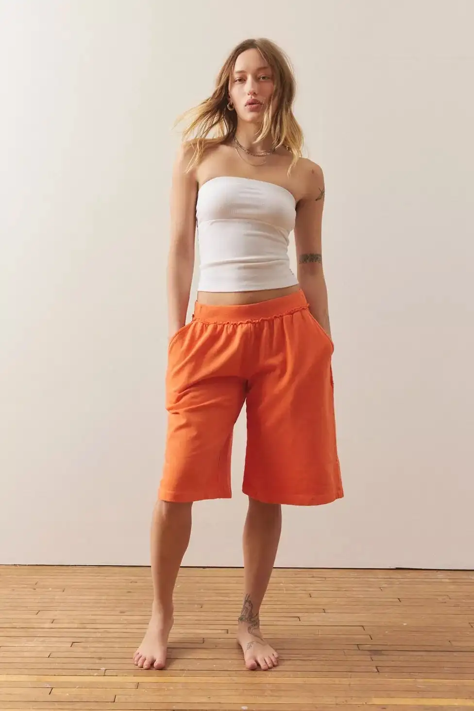 AFW took a trip back to mid-noughties Australiana, with knee-skimming board shorts popping up on more than one runway, suggesting that yet another revival trend may be upon us. At Verner, two-tone board shorts in a classic crepe fabric were detailed with two snap buttons at the top, instantly transporting us back to our childhoods. Meanwhile, Alix Higgins showed tan board shorts with a thick pink strip down each side.