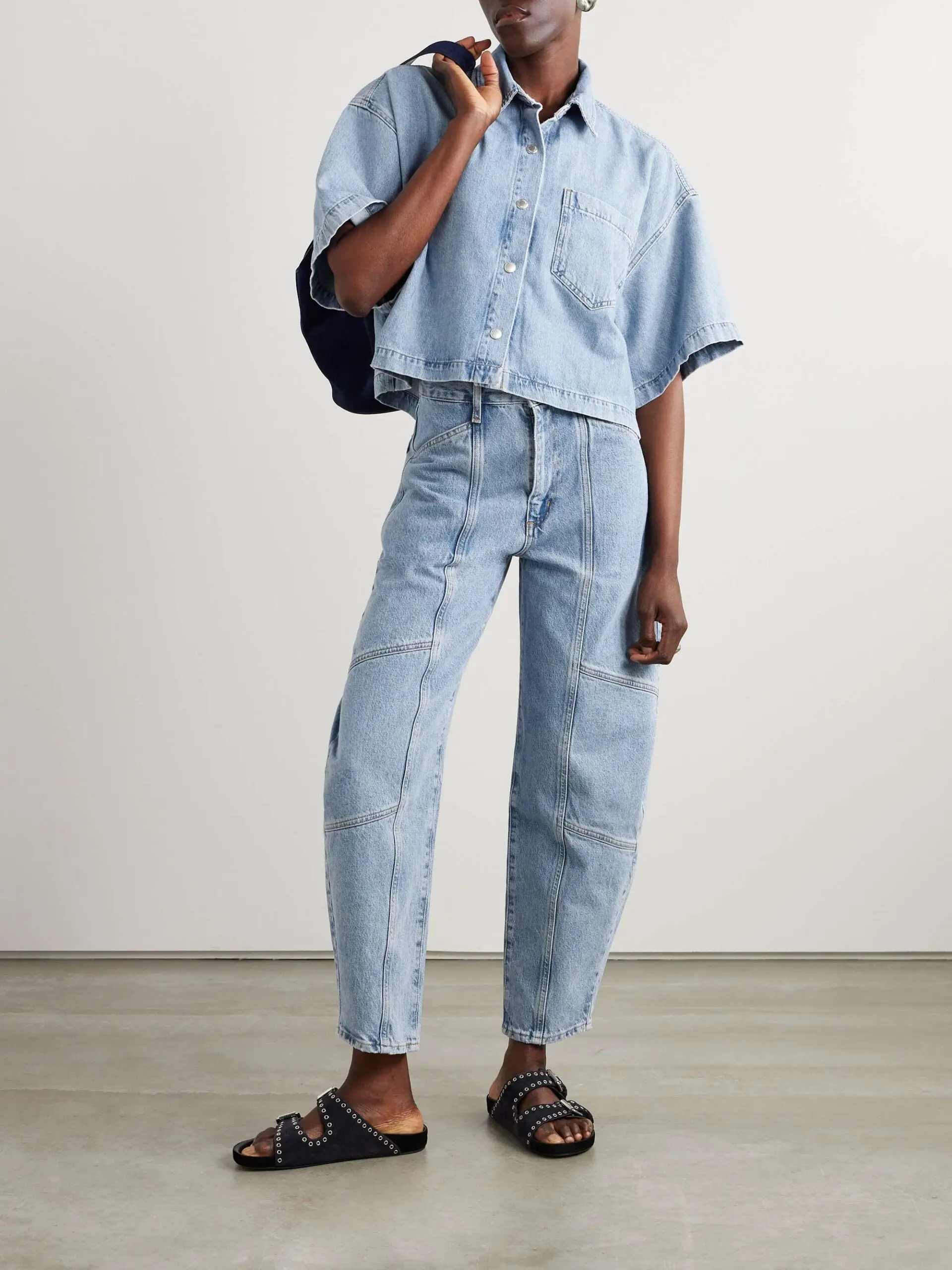 Deconstructed denim, and specifically patchwork pieces, was one of 2023’s biggest denim trends, and it predictably filtered down into the street style looks at the autumn/winter 2024 shows earlier this year. And while we saw this aesthetic in the street style at AFW, denim looked a little bit different on the runway. At Acler, panelled denim jackets offered a more polished iteration of the trend, while Injury went for a more shredded look, with frayed seams and trailing denim strips.