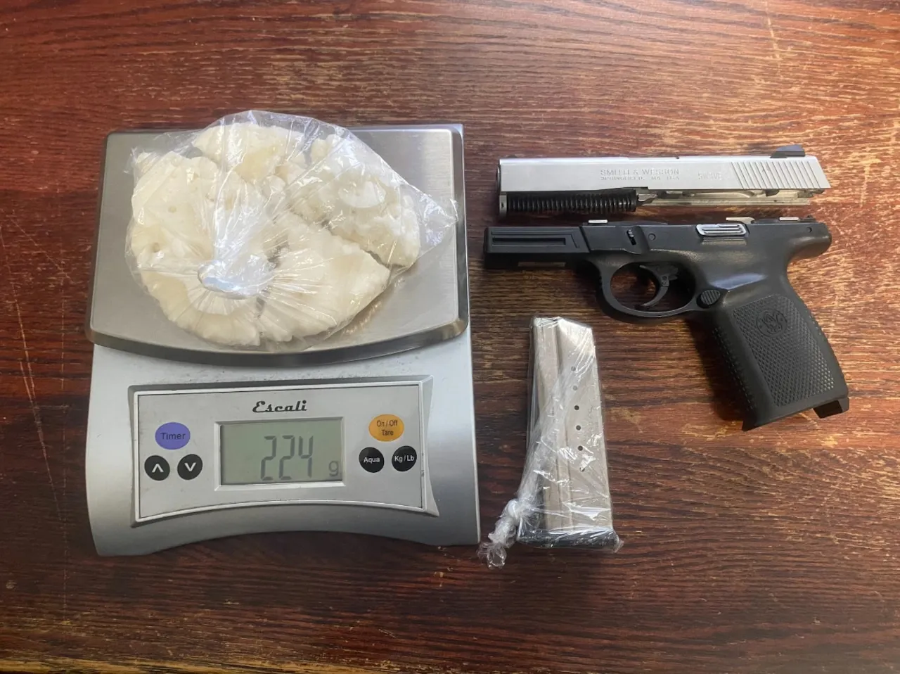 Massachusetts State Police Trooper Hunter Ratelle discovered 224 grams of crack cocaine and a disassembled, 9-millimeter Smith & Wesson handgun with a 16-round magazine behind the driver’s seat of the car after pulling the vehicle over on I-91 in Deerfield shortly after midday Monday. None of the people inside were licensed to carry a firearm, according to a statement from state police.