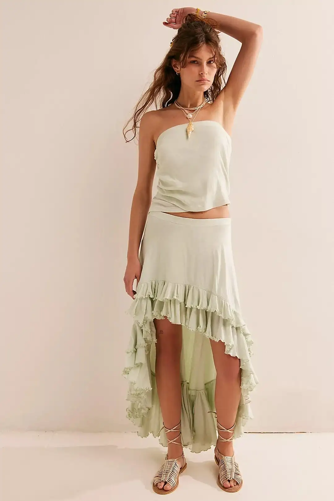 This summer is the season of the skirt. With mini skirts (and micro-minis) making a big comeback, and prairie-style midis being as versatile as ever, there are tons of styles to slip into, including bubble skirts, tiered midis and tennis skirts (call it the Challengers effect). Labels like Aknvas and Staud cosigned the bubble skirt this season, while tiered skirts were flaunted at Louis Vuitton. Best of all, you can style any silhouette with a simple tee and you’ll be ready to go.