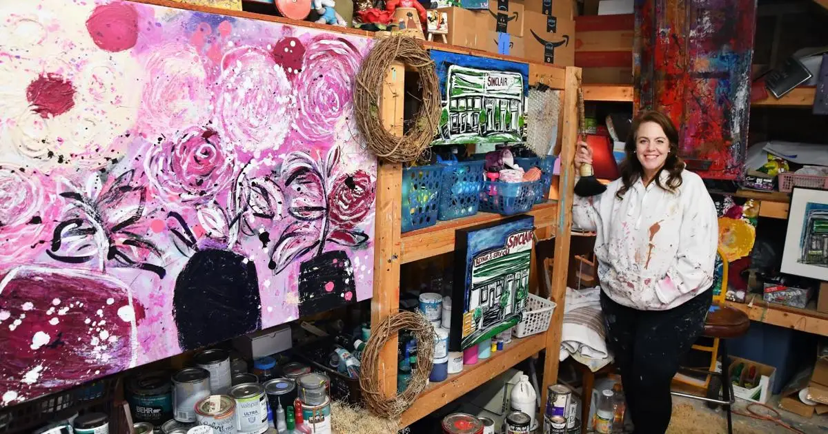 “I’m going to devote all of my time to my art,” she said, standing in the middle of her backyard studio, where color practically dances from every surface.