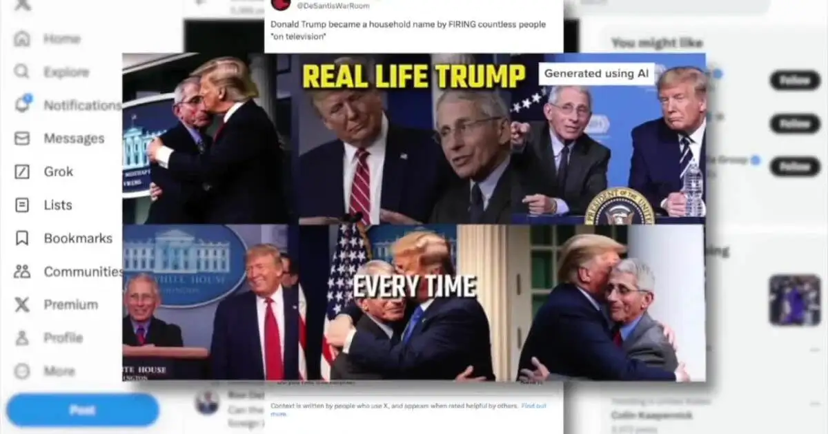 Campaigns, left and right, including Florida Gov. Ron DeSantis, have made ads with fake audio, video or images like these of the former president and Dr. Anthony Fauci embracing.