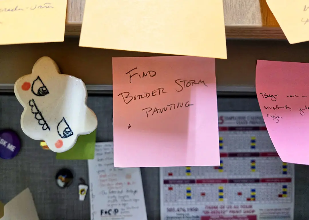 Trouble is, nobody has any idea where the Border Storm painting is these days. And the ones who might are beholden to professional silence. Doyle has experience tracking down hard-to-find artworks, but Spencer’s massive masterpiece left her with a trail so cold you’d think it was directed by Roland Emmerich. She now keeps a pink sticky note on her desk as a reminder to keep searching for Border Storm as any new leads emerge.