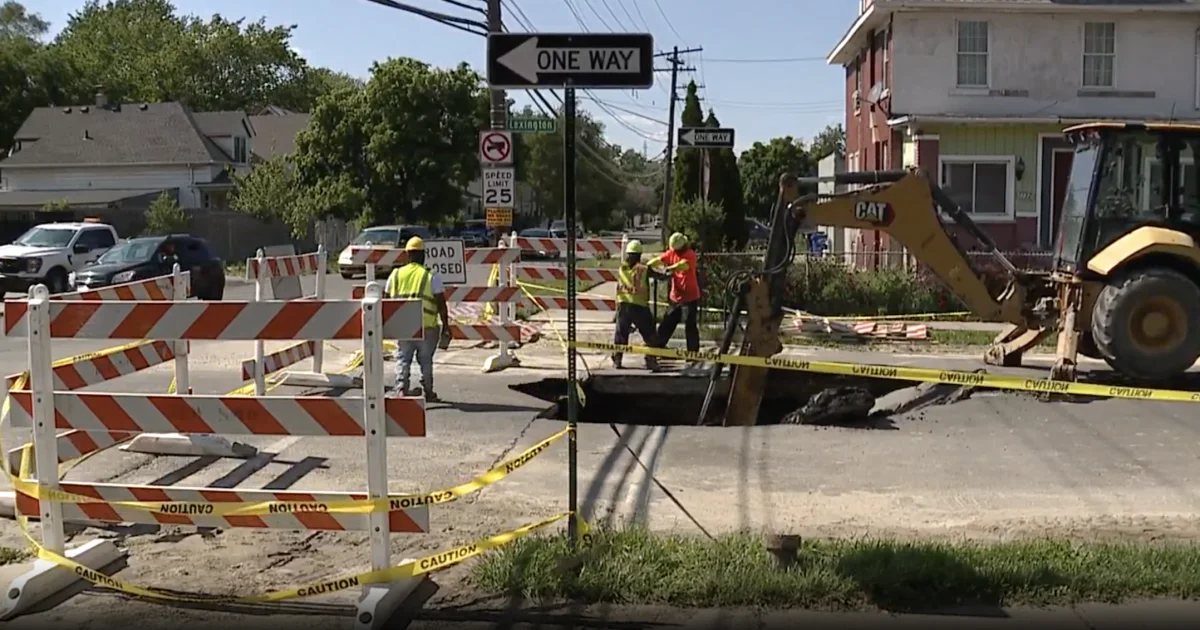 Car falls into sinkhole as street collapses in Southwest Detroit