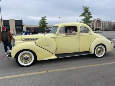 Long-time Mahoning Valley Olde Car Club member Rich Posivak pulls his 1940 Packard business coupe into the club’s first Tuesday night cruise of the season at the Southern Park Mall.