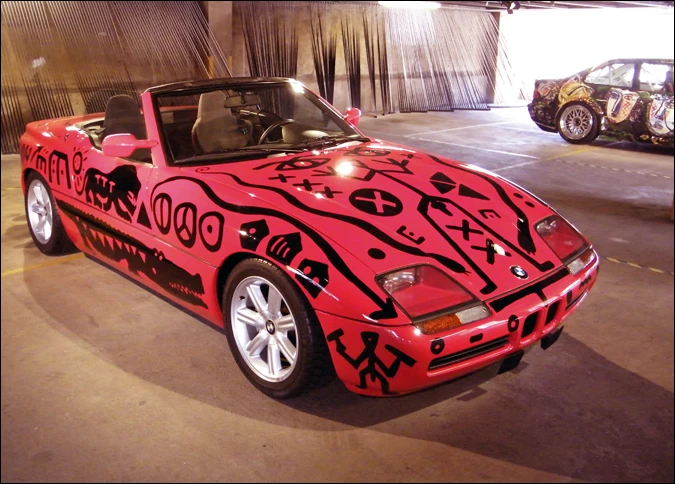 German artist A.R. Penck made sure of that by transforming this particular vehicle into a unique work of art. This bright red Art Car has been adorned with various symbols and images including the artist’s own ‘legendary’ stick figures.
