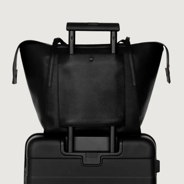 Packing is, of course, an art in itself, and one Wong has perfected. “I’ve built a lot of our products at Yu Mei around the concept of packing well, inspired by my own experience of carrying and travelling,” she says. “It’s key to choose a bag that has a slip pocket that fits over carry-on suitcase handles – fewer hands are required in transit, and you can pack a deceptively large amount. Our Claudia Tote fits this description; the back pocket can be unzipped at the base to unlock this feature.”