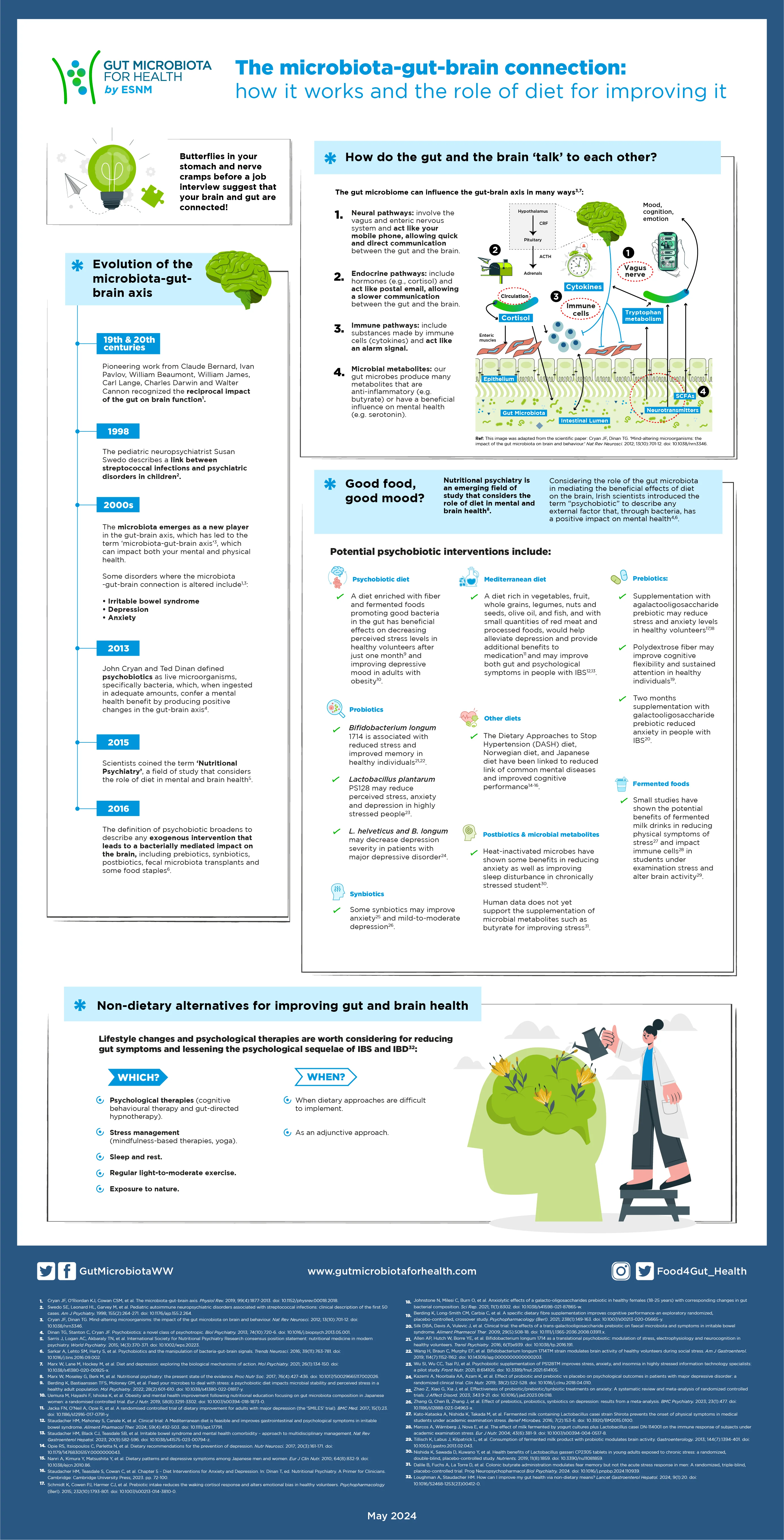 6. Sarkar A, Lehto SM, Harty S, et al. Psychobiotics and the manipulation of bacteria-gut-brain signals. Trends Neurosci. 2016; 39(11):763-781. doi: 10.1016/j.tins.2016.09.002.