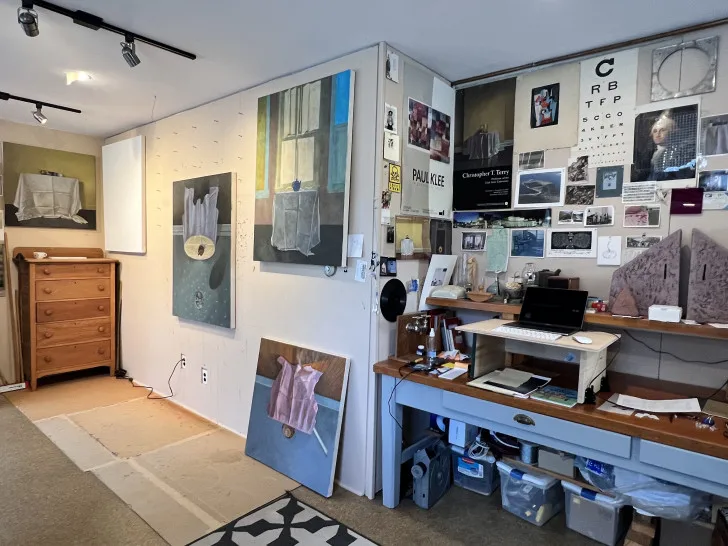 Terry is an artist crafting quiet images that focus primarily on interiors and still life. Often, these take the form of a table laid out with simple and utilitarian objects like a teapot or clock. He relishes in the subtleties of color, in the precision of composition, in creating structured views into imagined spaces.