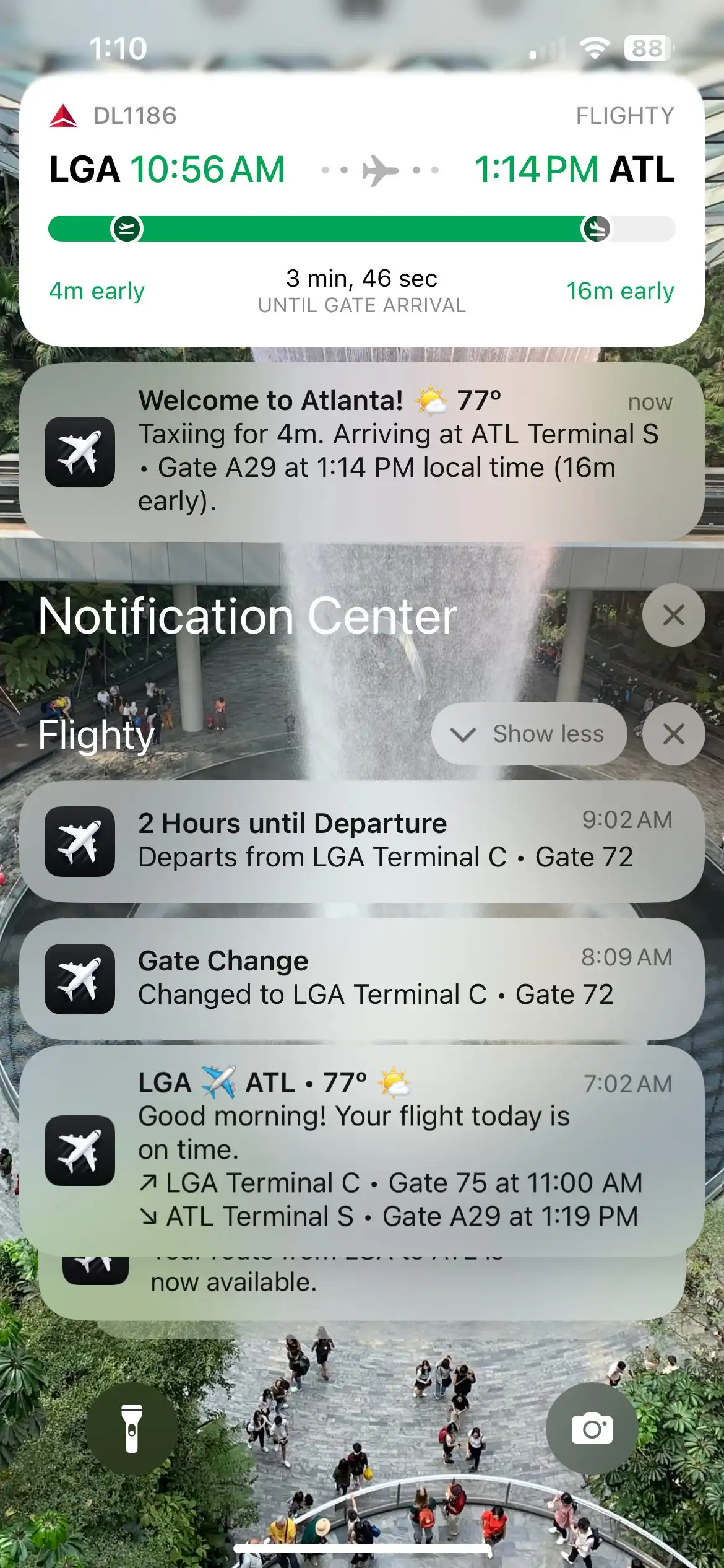 On a recent Atlanta flight, Flighty let me know the flight would be arriving a bit early.