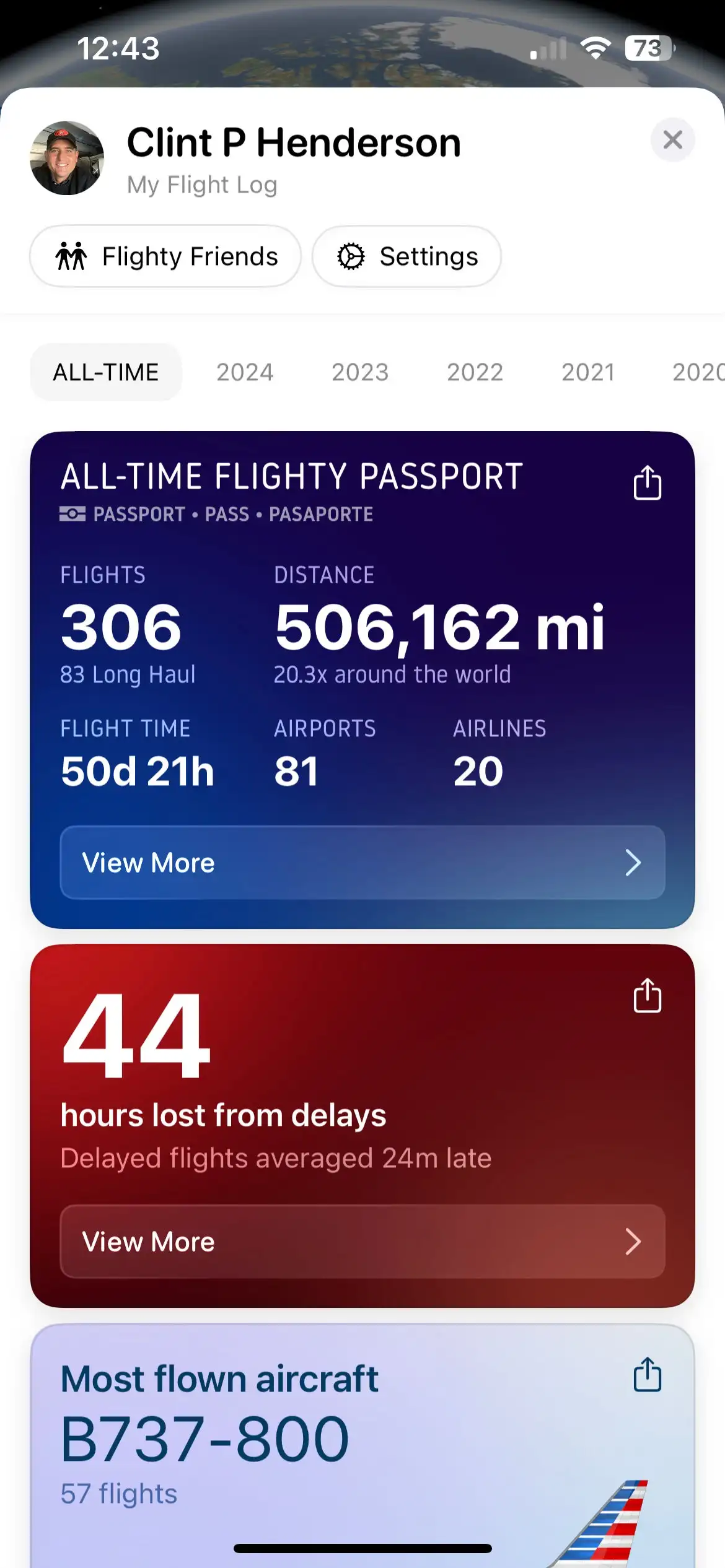 In total, I’ve lost a whopping 44 hours to delays, according to Flighty.