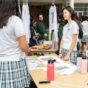 Both Chen and Hohenshelt are Form I students and vogue fanatics and use their passion for art history, fashion and design to make an impact in the vast world of fast fashion. Reading about these issues in the fashion and how the passion they love becomes corrupt. Chen put her art skills to work to create designs inspired by her and Hohenshelt’s favorite art moments. Together, they created Sloane the Brand.