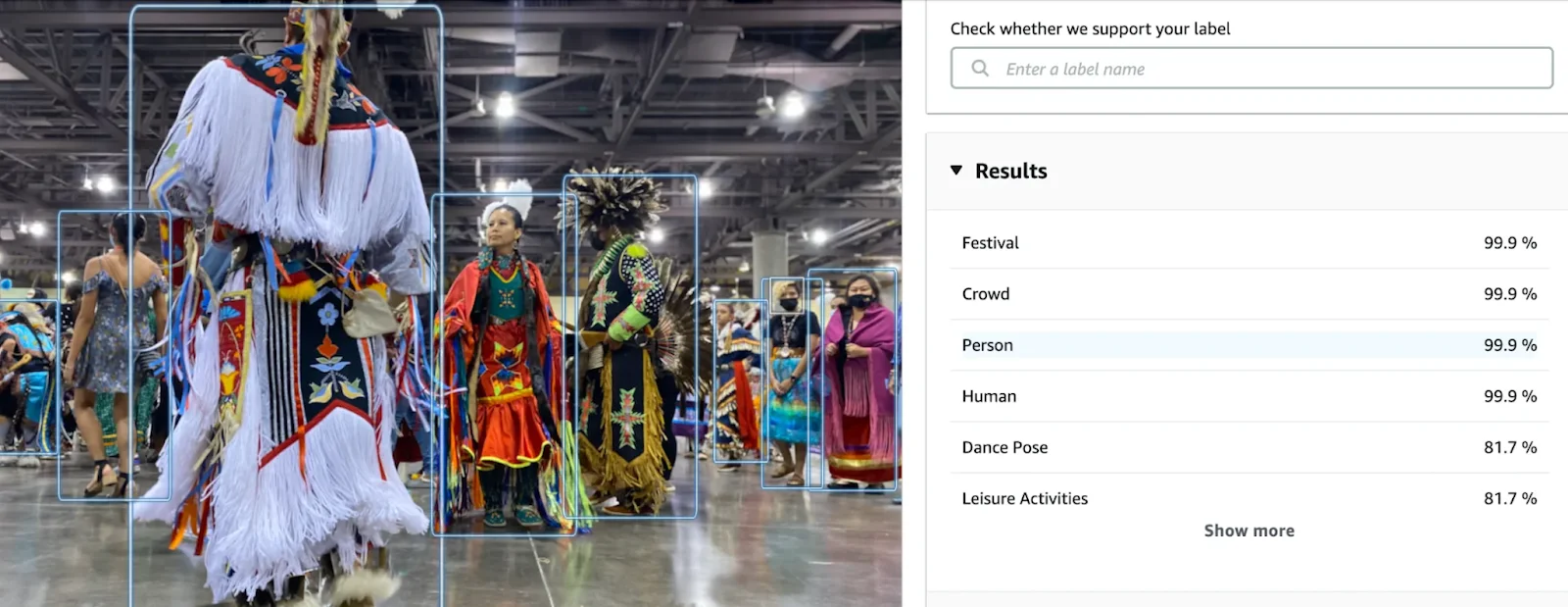 Generic labels from a popular image recognition app identifying a Native American powwow.
