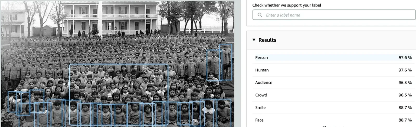 Given that many AI systems have been taught using text and images, we explored an image that featured pupils at the Carlisle Indian Industrial School in Pennsylvania. Founded in 1879 by the U.S. government, the Carlisle School was part of a larger federally funded effort to ethnically cleanse and culturally assimilate Native Americans.