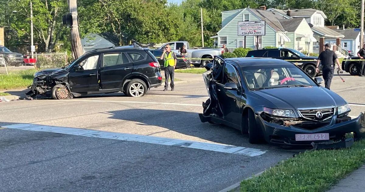 CLEVELAND — Cleveland police confirm a two vehicle accident that caused an electrical pole to collapse and then start a fire. EMS confirms that multiple people were taken to the hospital in stable condition.