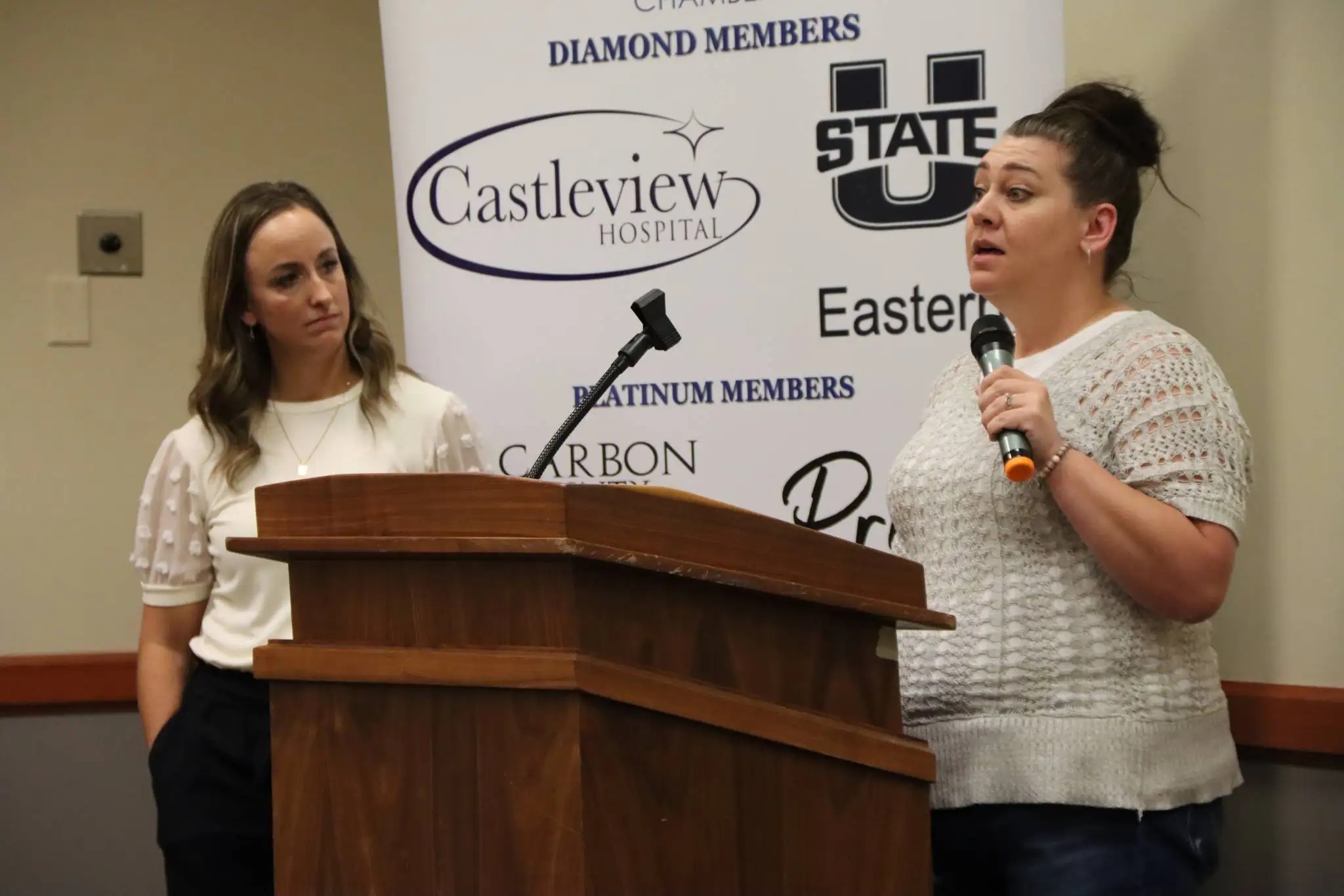Tiffany Noyes and Meranda Saccomano of Four Corners Community Behavioral Health were the keynote speakers for the Carbon County Chamber of Commerce’s (CCCC) May luncheon, turning their focus toward mental health tips for employees and employers.
