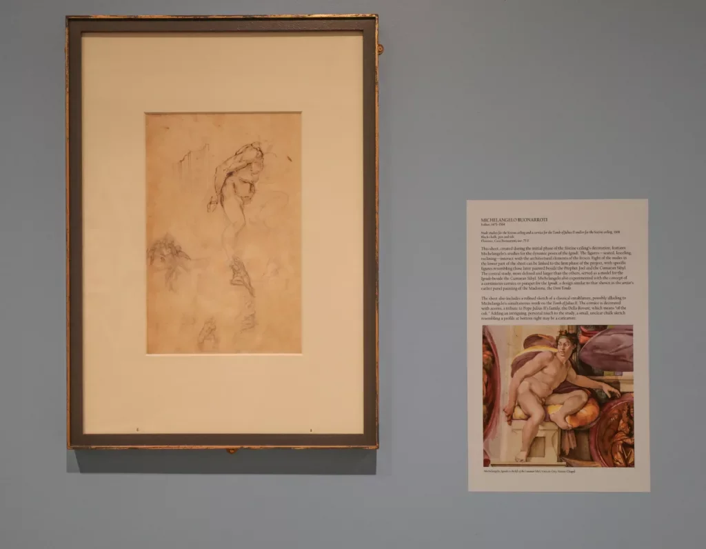 Visitors can explore 25 masterpiece drawings—seven making their American debut—including what’s believed to be Michelangelo’s first Sistine exploration and two apostle sketches reunited after centuries. The five galleries, bathed in red or blue, also showcase Giuliano Bugiardini’s portrait of Michelangelo, the artist’s self-portraits, and Francesco Granacci’s letter detailing the project’s challenges.