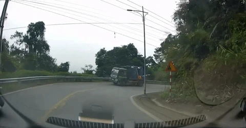 Tình huống giao thông nguy hiểm được camera hành trình ghi lại hôm 26/4, trên quốc lộ 2B, đoạn đường lên xuống thị trấn Tam Đảo, huyện Tam Đảo, Vĩnh Phúc.