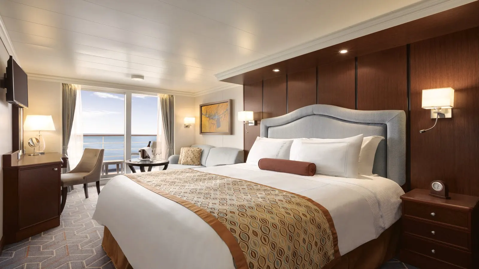 All sailings include the line’s “simply MORE” promotion, meaning virtually everything is included in the voyage fare: free round-trip airfare and airport transfers; complimentary vintage champagnes, wines and international beers during lunch and dinner; and a shore excursion credit of up to $1,400 per stateroom (credit varies by voyage length).