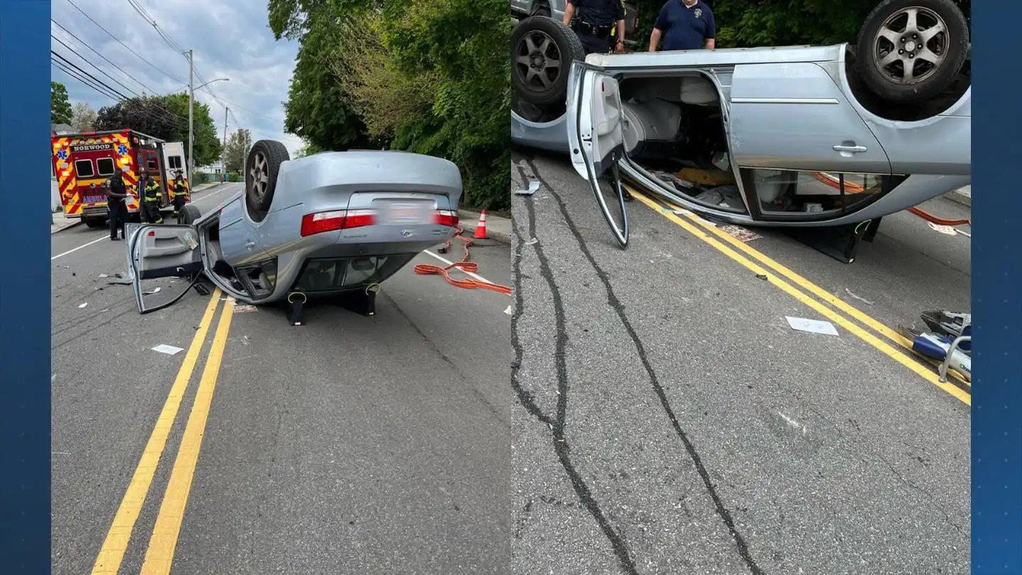 NORWOOD, Mass — One person was taken to the hospital after a two-vehicle collision caused their car to roll over in Norwood Thursday.
