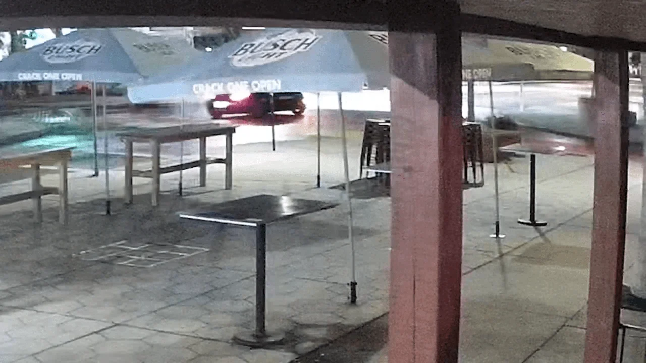 Surveillance video released by police shows a blue two-door vehicle spinning out in the intersection at 2500 Central Avenue, leaving tire marks on the mural, police said.