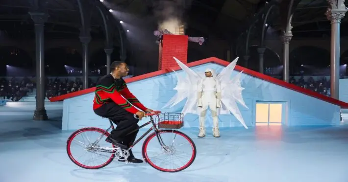 Foreshadowing his collection with Louis Vuitton, Tyler, the Creator was featured in the fashion house’s 2022 Paris fashion show. He joyfully pedaled along the catwalk as he honored Virgil Abloh by wearing an iteration of his designs. Featuring the colors of the Pan-African flag, Tyler wore a sweater with LV monogramming.