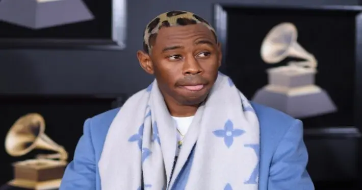 Even in the early days of his career, Tyler has never been afraid to step outside of the box. To celebrate his first time being nominated for “Best Rap Album” at the Grammys, Tyler wanted to make a statement. In 2018, he hit the Grammys Red Carpet in a baby blue coat with a monogrammed LV scarf. The star of the outfit was his freshly-dyed cheetah print hair.