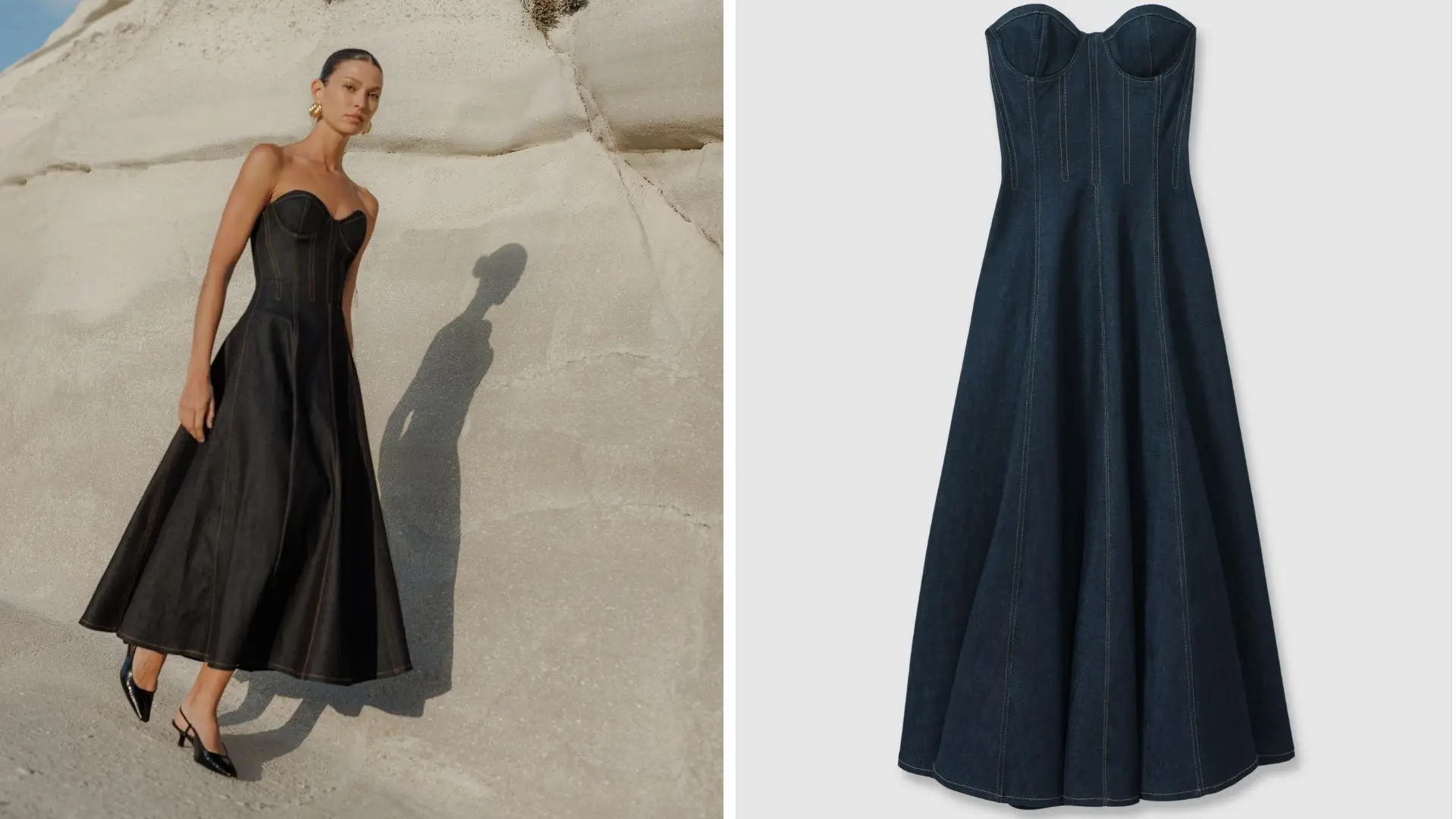 Denim in all forms will forever have a place in our fashion-loving hearts but this strapless midi is seriously something else. Fashion ‘it’ girl Danielle Copperman Sersoub styled hers for an elegant sunset evening, pairing it with black sling-back kitten heels and her favourite oversized gold earrings.
