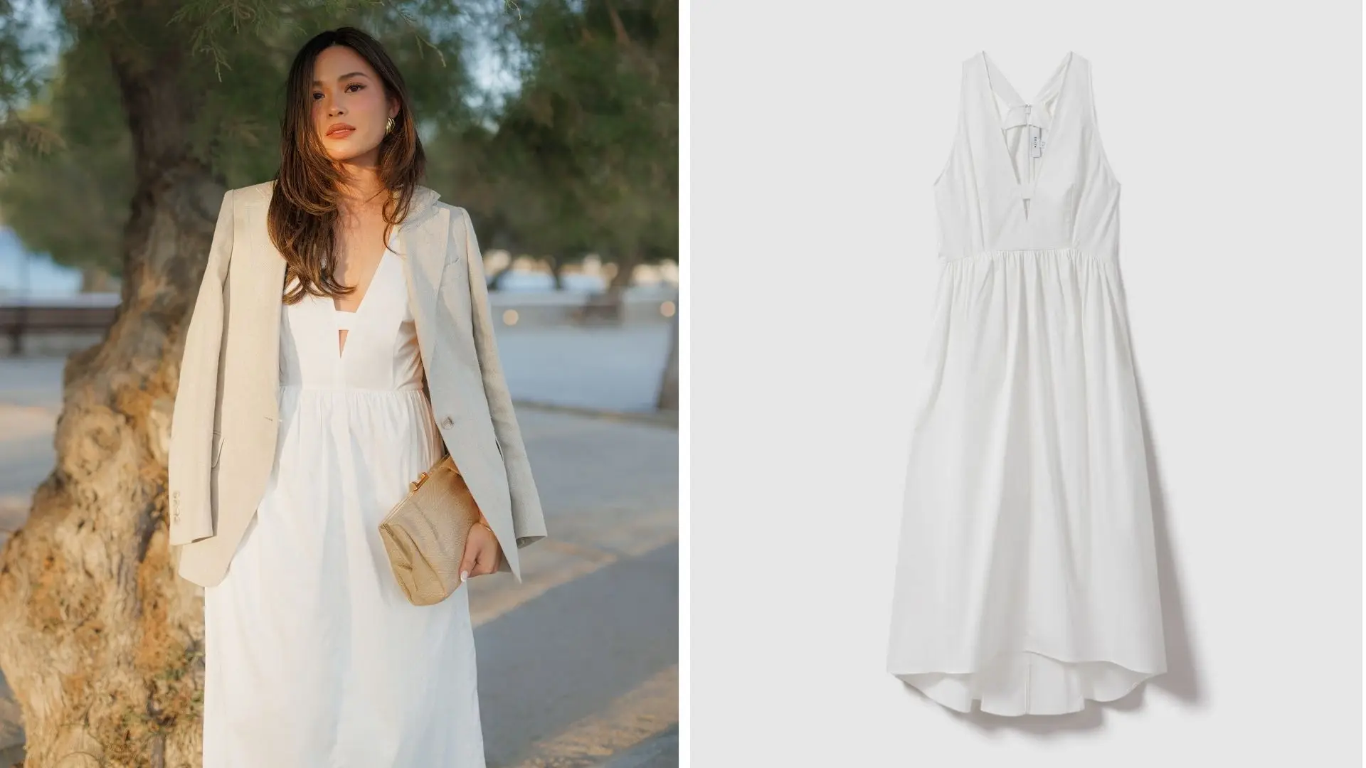 As we all know getting glam on holiday is one of the most exciting parts and finding the perfect ensemble to don over and over is an absolute must. Fashion lover and style muse Anisha Gurung gave us a lesson in glamorous styling, pairing her Cotton Blend High-Low Mini Dress with a stack of gold bangles, a gold beaded clutch bag, a set of statement earrings and a slick back hair style, effortlessly nailing out-of-office elegance.