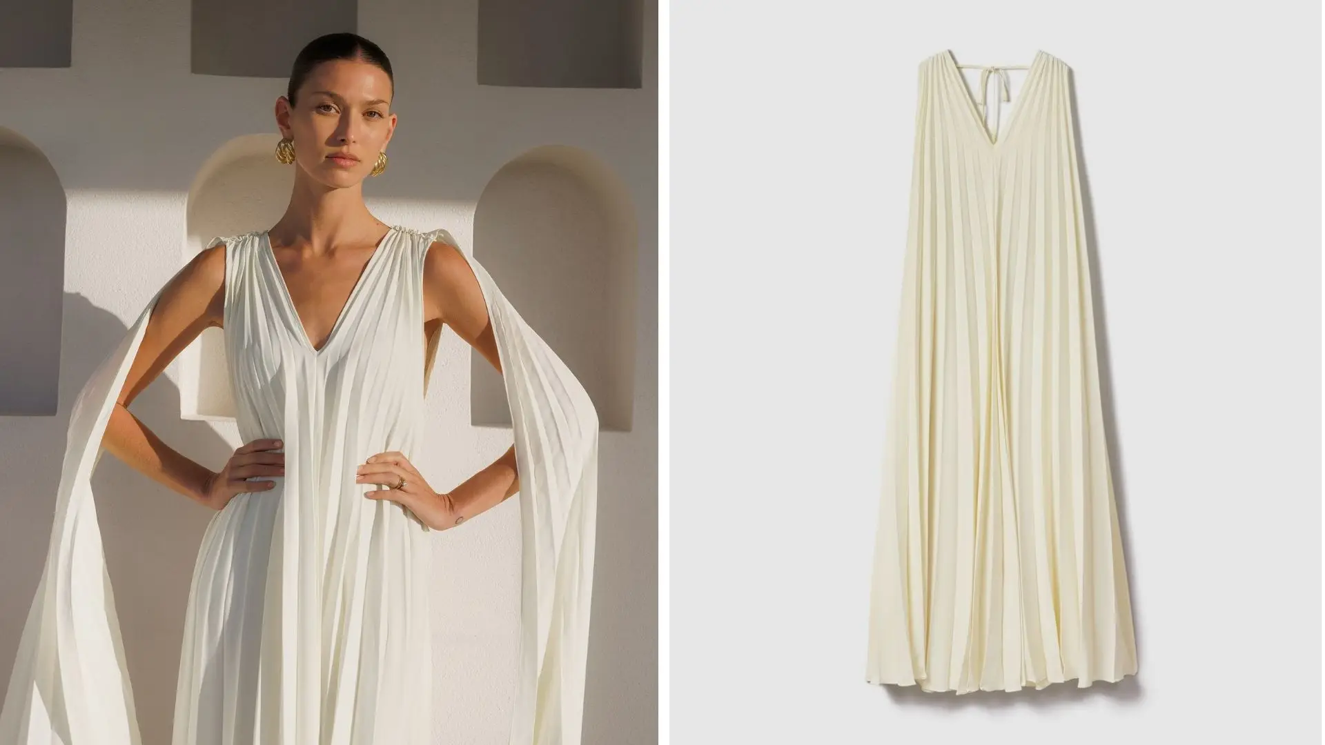 If the last piece of your holiday planning puzzle is to find the perfect summer evening dress then look no further than this utterly elegant Pleated Cape Sleeve Midi Dress. Perfect for when you need something a little bit glam but not over the top, this dress can be paired with your favourite statement earrings for a pop of island glamour.