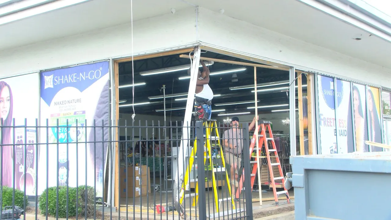 On Friday, construction crews were seen attending to the hole left into the side of Be Younique putting up boards and temporary walls on the side of the business.