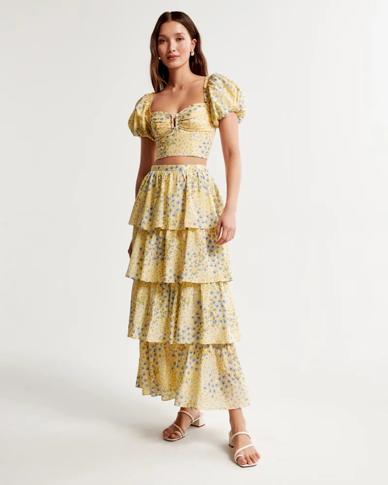 Take a note from 2023 and try a dramatic bubble skirt or up the volume with billowy A-line silhouettes and flowy tiered styles. Prefer something more subtle? Try a body-skimming maxi skirt in a fanciful floral print.