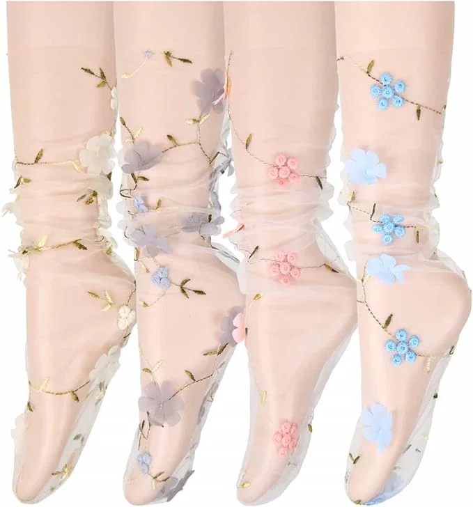 Mesh socks are likewise trending, as are stocking socks as seen at Australian Fashion Week. This is yet another summer-friendly way to reinterpret Bridgerton style for modern times. Opt for frilly mesh socks that feature bows, pearls, or floral appliques for a whimsical touch to cap off your look.