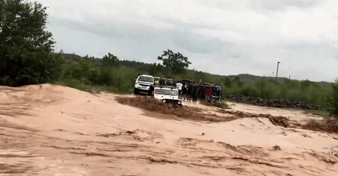 ẤN ĐỘ – Một tài xế suýt phải bỏ mạng khi bất chấp cảnh báo, điều khiển chiếc xe jeep vượt sông và bị dòng nước lũ cuốn trôi.